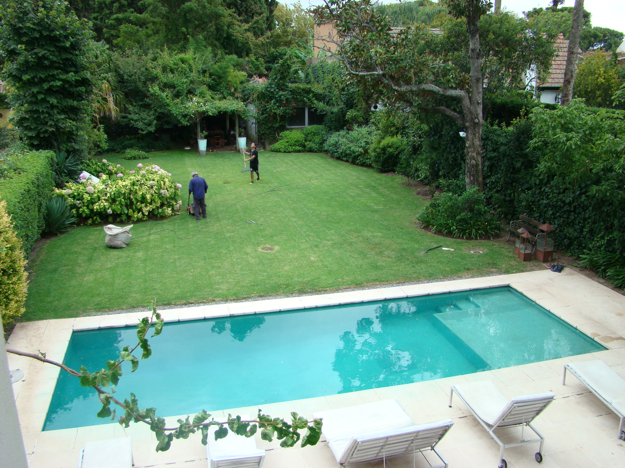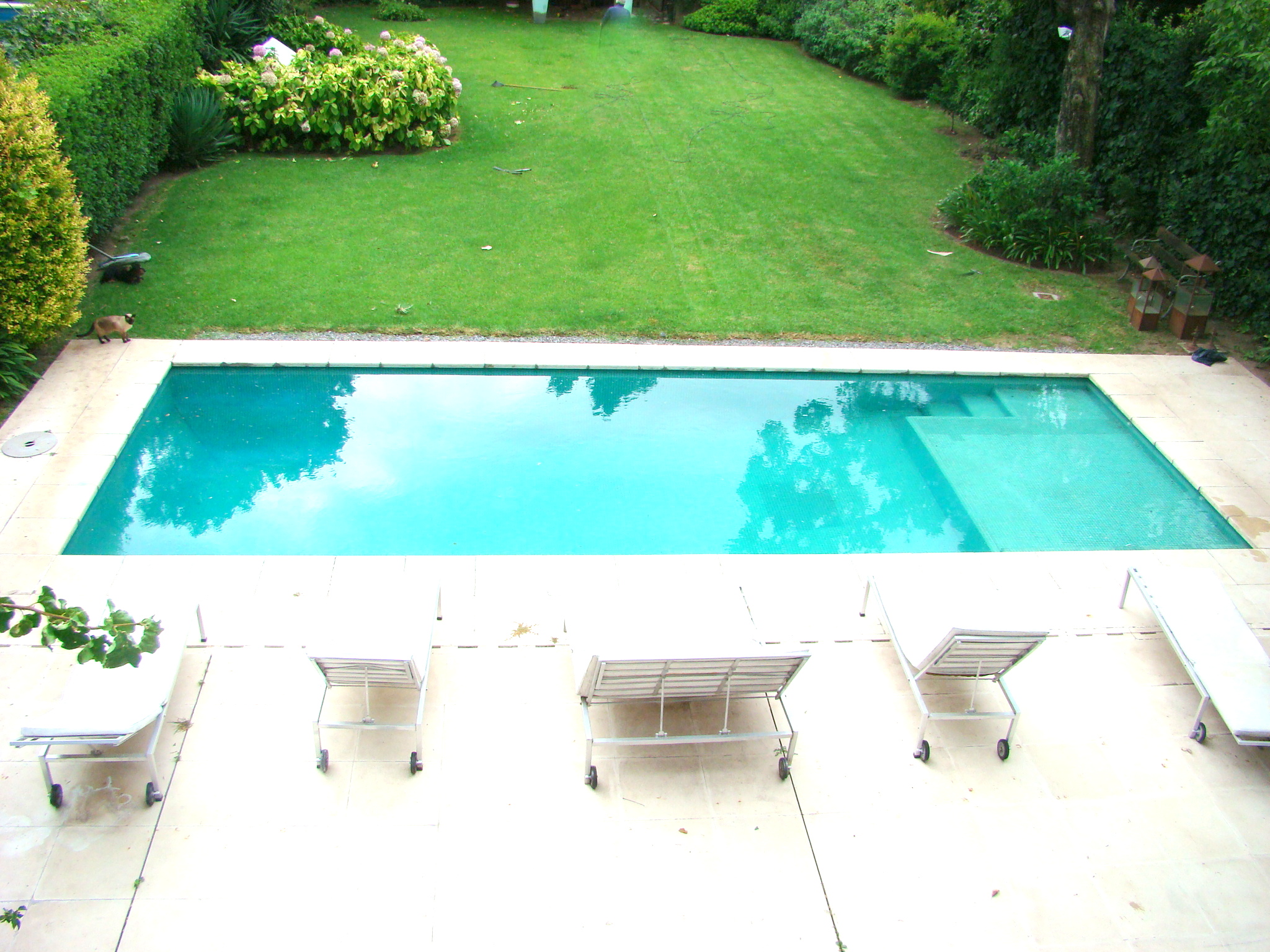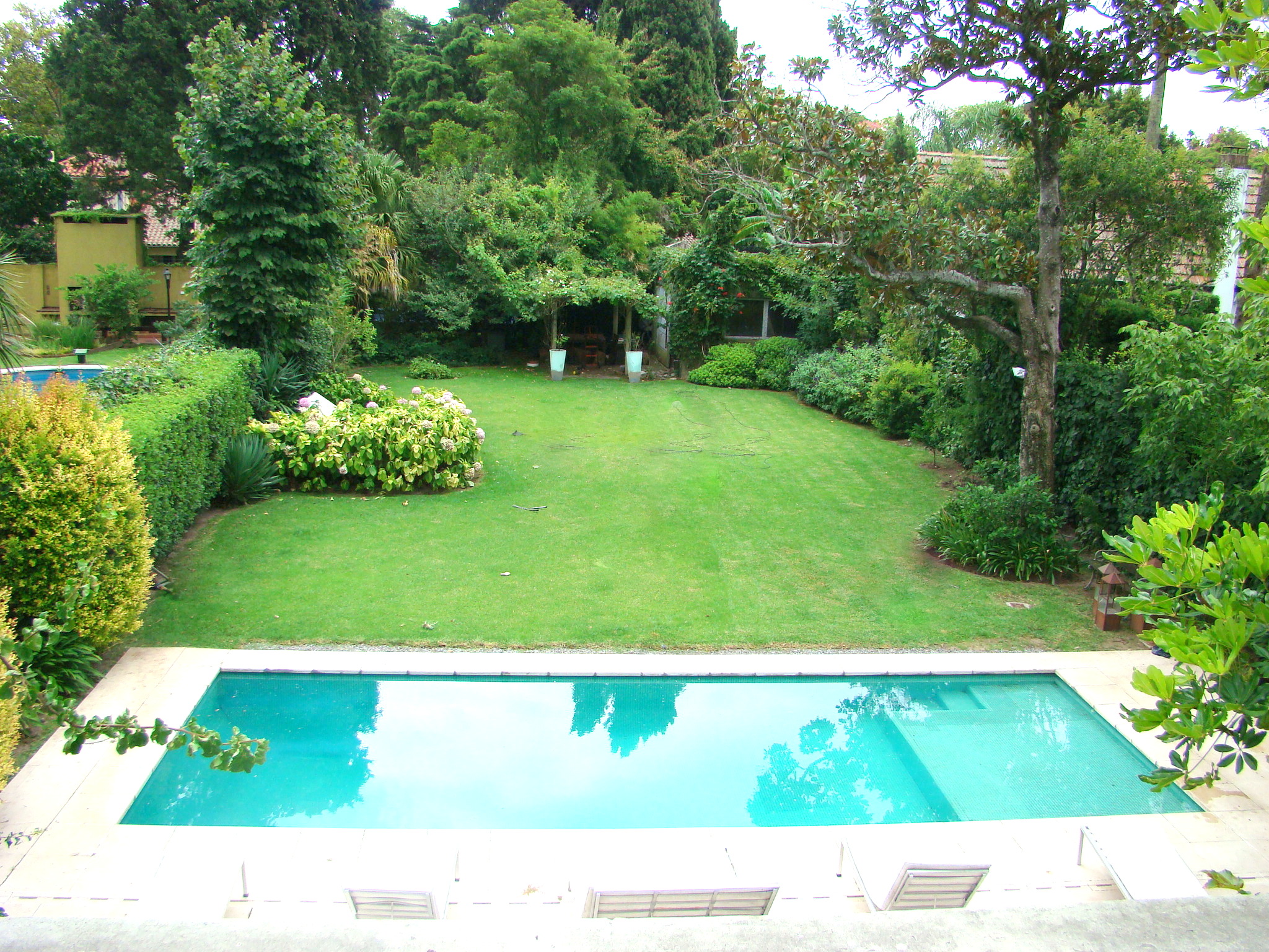 Gran jardín con excelente orientación y piscina revestida con venecitas e iluminacion.