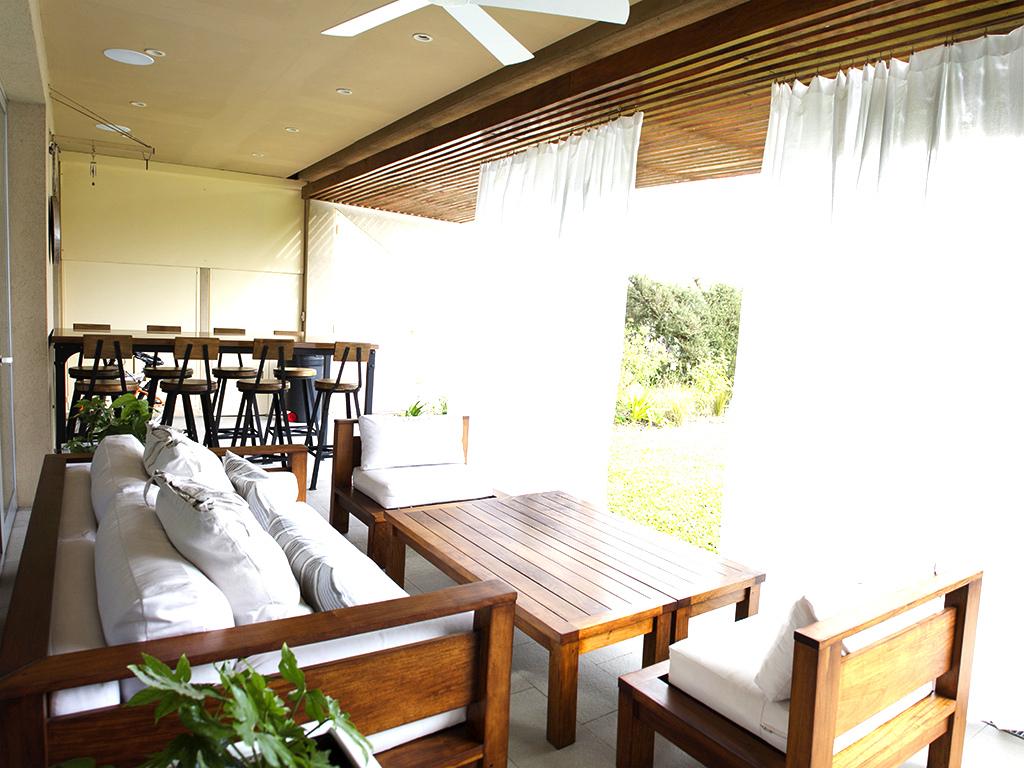 Sistemas de audio en galería, muelle, y en el Living Comedor con proyector y pantalla.