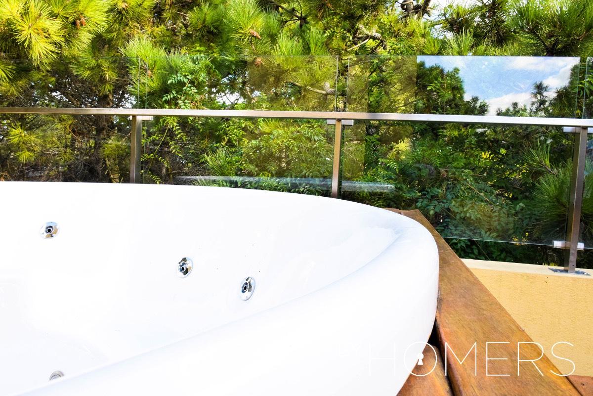 • Pileta climatizada con filtro automático, Jacuzzi, y deck de madera con solarium.